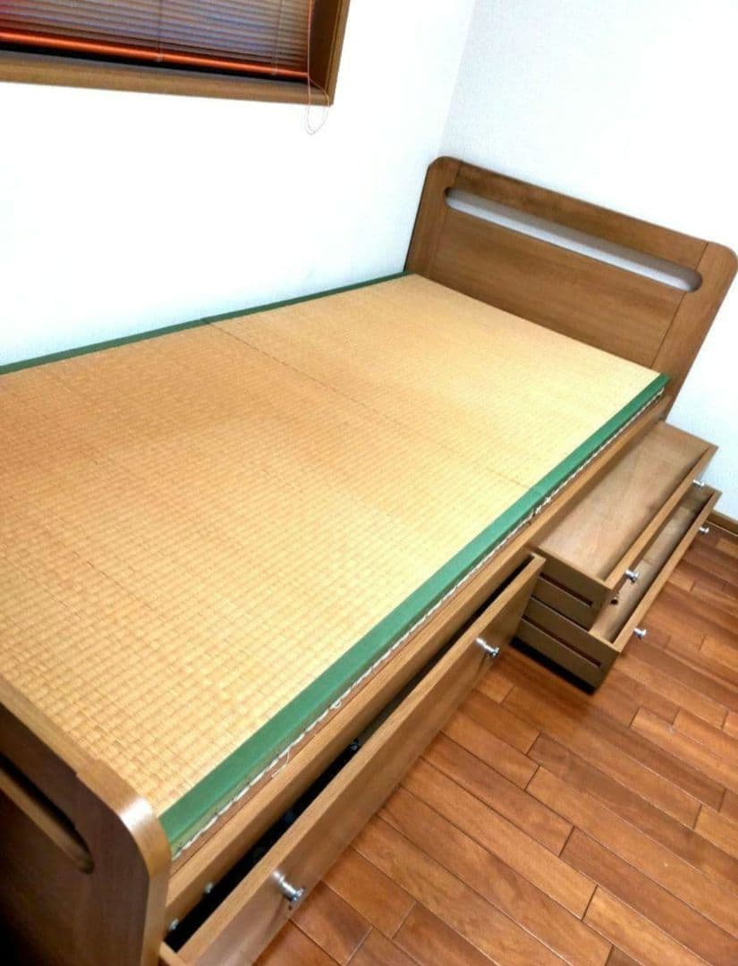 - 素朴な木目の良さにひかれて初めて購入しました。 ブラックチェリーでしたが木目の杢が大変美しく、想像以上にいい質感で大変満足しています。 組み立ては配送業者さんがやってくれましたが、各部材の寸法がぴっちりなので、大変驚いていました。いろいろな家具を取り扱ってきたそうですが、ここまできちんと作られているのはそう滅多にないそうです。 特にヘッドボードの美しさはピカ一です。 いろいろ家具屋を見て回りましたが、市販品ではこのような出来のものは無いと言って良いと思います。 本当にありがとうございました。 次に家具を買うときも是非利用したいと思います。 大事につかわせてもらいます。